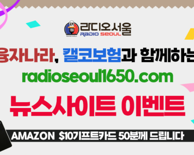 라디오서울 뉴스사이트 새단장 기념 ‘아마존 기프트카드 이벤트’ 진행 라디오서울(AM 1650)이 운영하는 뉴스 웹사이트 radioseoul1650.com이 최근 대폭 개편을 단행하며 미주 한인 사회의 대표 뉴스 포털로 새롭게