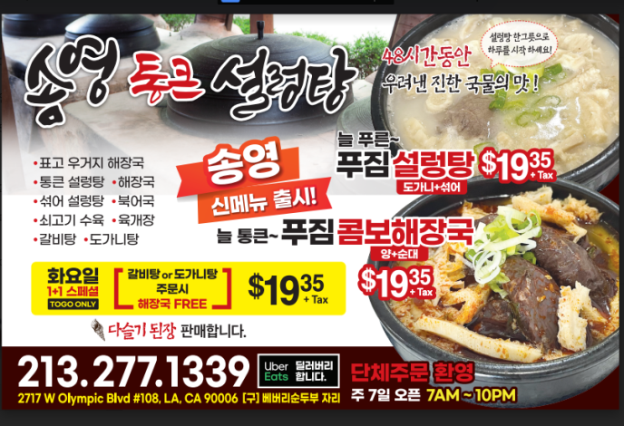 송영 통큰설렁탕 몸보신 신메뉴 출시