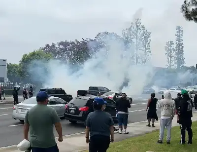 시위대, 도로 점거·방화·투석… 트럼프 행정부, 주 방위군 투입 예고 #LA시위 #이민단속 #연방요원 #트럼프 #최루탄 #연막탄 #방화 #주방위군 #미국뉴스 미국 캘리포니아주 LA 카운티 파라마운트(Paramount) 지역에서 7일(현지시각)