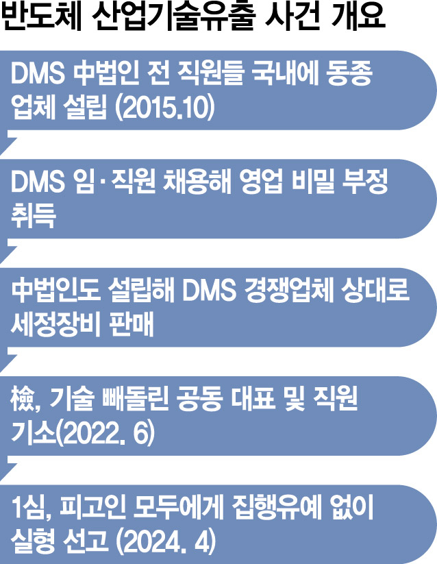반도체·디스플레이 장비 업체인 코스닥 상장사 디엠에스(DMS(068790))의 한국 법인과 중국 자회사에서 핵심 기술과 인력을 무단으로 빼돌려 동종 기업을 차린 뒤 수십억 원의 매출을 올린 업체 대표와