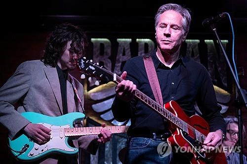 청바지차림으로 베를린장벽 붕괴 직전 발표된 닐 영 노래 연주 키이우의 바에서 연주하는 블링컨 미 국무장관/ Reuters 우크라이나를 전격 방문한 토니 블링컨 미 국무장관이 14일(현지시간) 수도