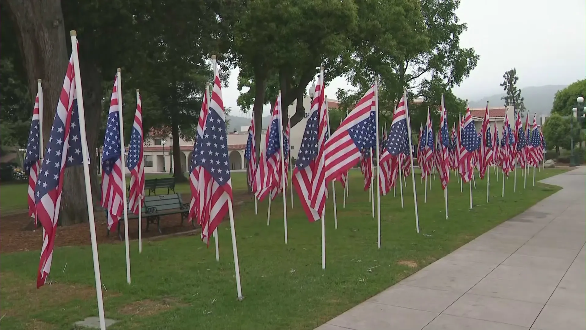 도널드 트럼프 전 대통령이 34건의 중범죄 혐의에 유죄 판결을 받은 지 하루 만인 31일, 남가주 몬로비아 공공 도서관앞에서 거꾸로 꽃힌 성조기들이 수십개 발견됐습니다 이 성조기는