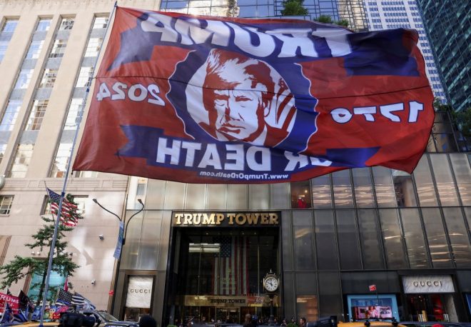 도널드 트럼프 전 대통령의 ‘성추문 입막음 돈’ 의혹 사건 형사재판에서 유죄 평결이 나오자 이에 분노한 지지자들이 크고 작은 행동에 나섰다. 한편에서는 성조기를 거꾸로 내걸거나 그런