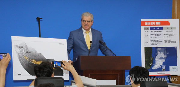 동해 심해 석유·가스 매장 분석을 담당한 미국 액트지오(Act-Geo)의 비토르 아브레우(Vitor Abreu) 고문은 7일(이하 한국시간) “이 프로젝트의 유망성은 상당히 높다”고 말했다. 아브레우 고문은 이날 오전 정부세종청사에서