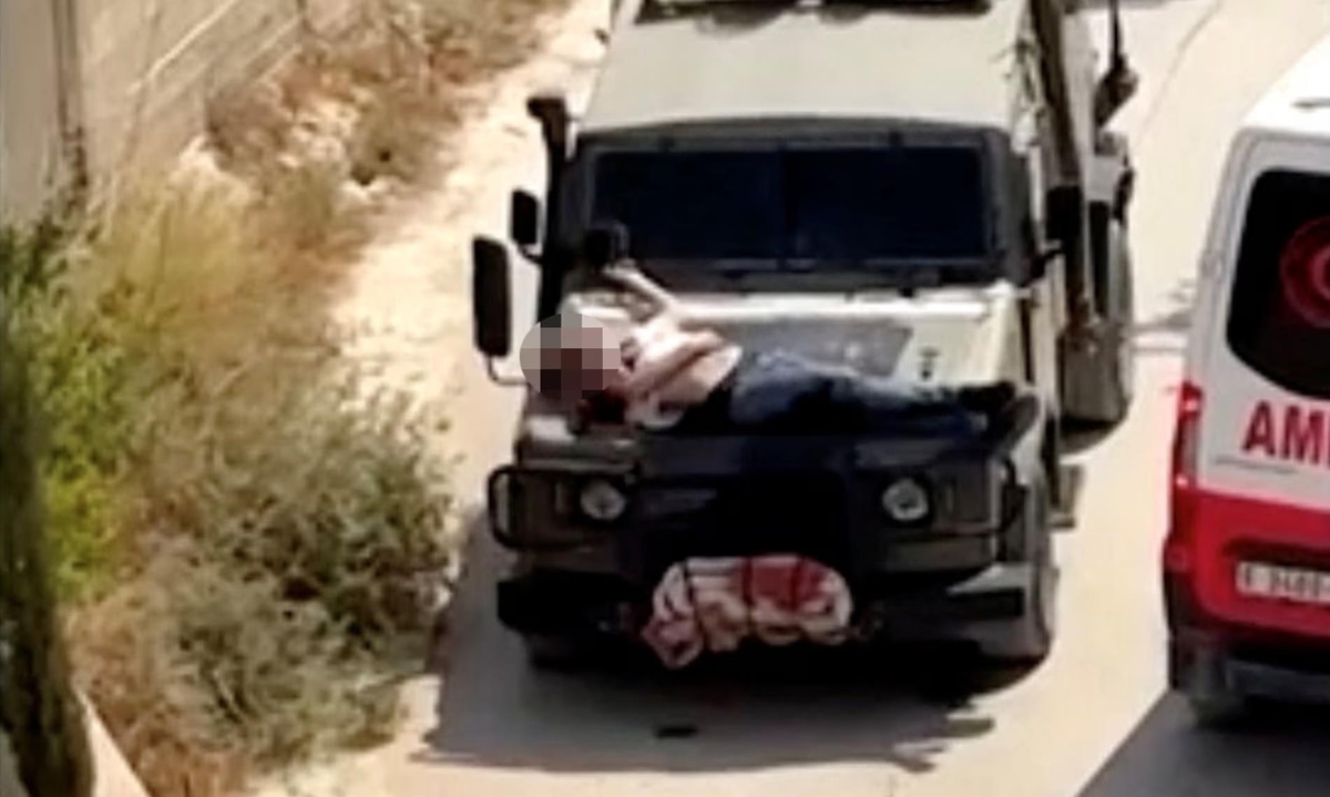 이스라엘군, 다친 팔레스타인인 차량 앞 보란듯 매달고 운전