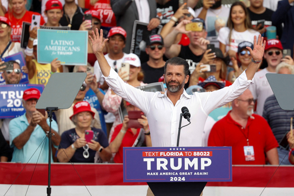 트럼프 장남, 부통령 후보지명 앞서 공화 전대 연설…밴스 낙점?