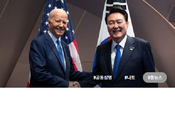 ‘한반도 핵억제 핵작전 지침’ 공동성명 채택…나토 계기 한미회담 개최 바이든 “핵 포함 모든 역량으로 對한국 확장억제 뒷받침” 尹대통령 “한미동맹 연합방위태세에 크게 기여할 것” 윤석열 대통령과
