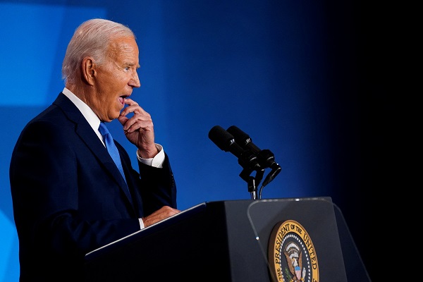 완주 확인 기자회견 이후에도 의원들 후보 사퇴 요구 이어져 오바마·펠로시, 바이든 앞날 우려 공유…일부 후원자 “9천만달러 후원 보류” 조 바이든 미국 대통령이 고령으로 인한 건강
