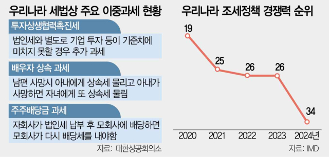 또 붙어 차를 산다는 소비 행위에 이중·삼중으로 소비세가 과세되고 있다는 게 상의 측 설명이다. 고가 주택에 부과되는 종합부동산세 역시 재산세가 또 부과되는 대표적 이중과세 항목이다.