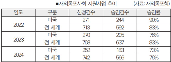 재외동포정책 수립 및 지원 확대를 위해 탄생한 재외동포청이 지난해 출범한 이후 오히려 재외동포단체들에 대한 한국 정부의 지원 규모가 대폭 축소된 것으로 나타났다. 재외동포청이 최근 공개한