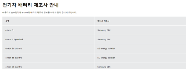 15종 차종 모두 LG엔솔·삼성SDI 배터리 쓰여 전기차 업계의 배터리 제조사 공개가 이어지는 가운데 폭스바겐과 아우디도 14일 자사 전기차에 쓰인 배터리를 공개했다. 이날 폭스바겐그룹코리아는 폭스바겐과 아우디