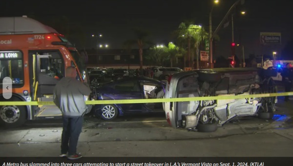 로스앤젤레스 버몬트 비스타 지역에서 지난 밤 거리질주를 시도하던 차량 3대가 시내버스와 충돌하는 사고가 발생했습니다. 현지 시간 일요일 오후 11시 30분경, 사우스 피게로아 애비뉴와 센추리 불러바드