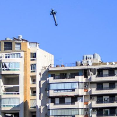이스라엘이 레바논 남부에서 친이란 무장정파 헤즈볼라를 겨냥한 공격을 강화하고 있는 가운데 22일 이스라엘 전투기에서 발사된 미사일이 베이루트의 고베이리에 있는 아파트로 떨어지고 있다. 이번 공격은 이스라엘군이