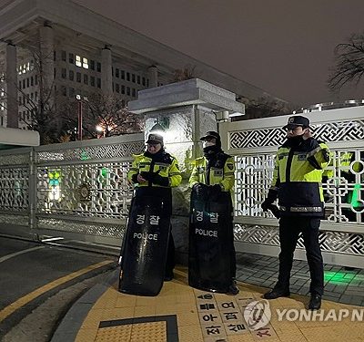 3일 윤석열 대통령의 비상계엄 선포 직후 국회는 출입문이 폐쇄됐다. 현재 신원이 확인된 일부 인원만 출입이 가능하다. 오후 11시 30분께 서울 영등포구 국회의사당에는 국회 경비대와 영등포경찰서