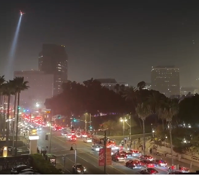 LOS ANGELES – In what locals initially mistook for another Hollywood film shoot, a white Nissan Armada decided to create its own drive-through entrance at