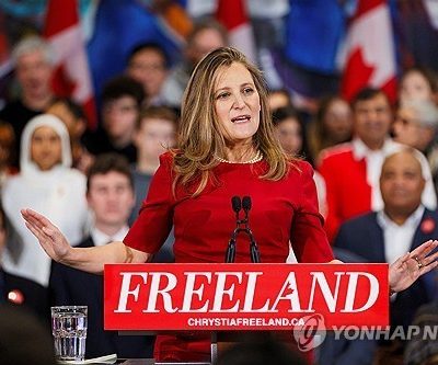 프릴랜드 전 재무, 플로리다산 오렌지 등 ‘보복 대상’ 언급 “총리 되면 다른 나라들과 트럼프 위협 공동대응 정상회담 열겠다” 캐나다의 차기 총리 후보인 크리스티아 프릴랜드 전