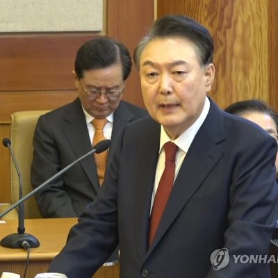 ‘야당’ 68번·계엄 배경 강조…위법 의혹엔 “호수 위 달그림자” 헌정사상 첫 현직 대통령 출석… ‘손 번쩍’ 직접 발언 기회 요청 현직 대통령 최초로 탄핵심판에 직접 출석한