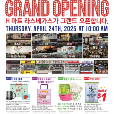 H 마트가 네바다, 라스베가스점을 오는 24일 공식 개점합니다. H 마트 라스베가스점은 약 5만3천395 스퀘어 피트 규모로 , 2620 사우스 데카토어 블루바드에 위치하며 매장은 매일 오전