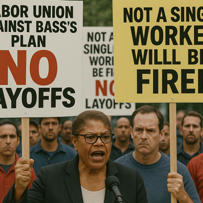 “10억 달러 예산 적자 해소 위한 배스 시장의 1,600명 해고안에 노조 전면전 예고” 최근 로스앤젤레스시가 약 10억 달러에 달하는 예산 적자에 직면하면서, 캐런 배스 시장이