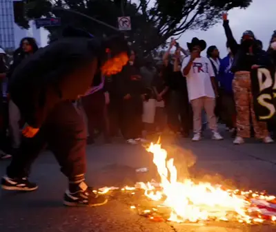 “트럼프 반대” 구호 속 남미 국기 들고 시위…경찰, 불법 집회 선포 #로스앤젤레스 #ICE반대시위 #성조기소각 #트럼프반대 #불법집회 #미국시위 #LAPD #남미국기 #사회이슈 미국 로스앤젤레스에서 ICE(이민세관단속국) 반대 시위가
