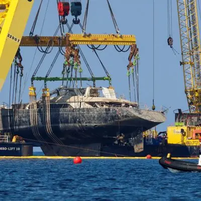 사고 원인의 실마리가 풀릴지 주목 지난해 여름 이탈리아 시칠리아섬 해안에서 침몰한 호화요트 베이지언호의 인양 작업이 성공적으로 마무리됐다. 이에 따라 ‘영국의 빌 게이츠’로 불렸던 오토노미 창업가
