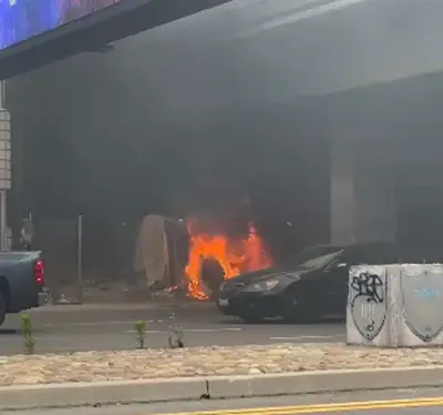 [속보]405 고속도로 교각 아래 노숙자 텐트 화재 발생..