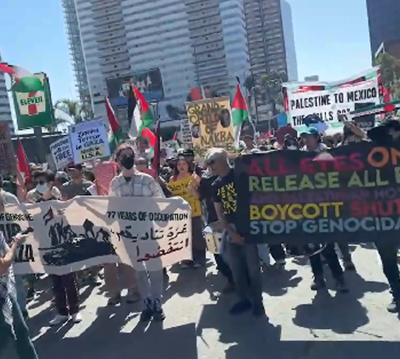 로스앤젤레스 한인타운과 브렌트우드 일대를 관통하는 윌셔 대로가 오늘 오후, 팔레스타인 지지 시위대에 의해 잠시 마비됐습니다. 팔레스타인 국기와 “가자 지지, 학살 중단” 구호가 울려 퍼진 현장에는