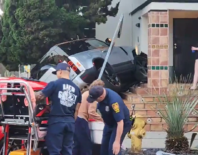 조용한 LA의 베버리 그로브 주택가 급발진 사고 주택현관 덮쳐…