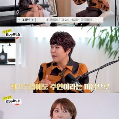 힘든 시절 유재석의 응원 받았던 일화 소개 코미디언 조혜련이 힘든 시절 유재석의 응원을 받았던 일화를 소개했다. 14일(한국시간) 공개된 유튜브 채널 ‘최은경의 관리사무소’에는 ‘테토력 20000% 조혜련의
