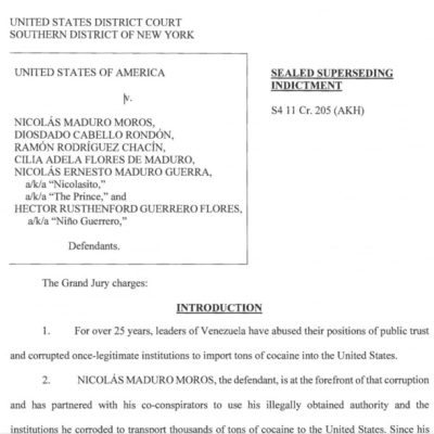 “대통령이 마약 조직 우두머리였다”…美 법무부, ‘마두로 기소장’ 전격 공개